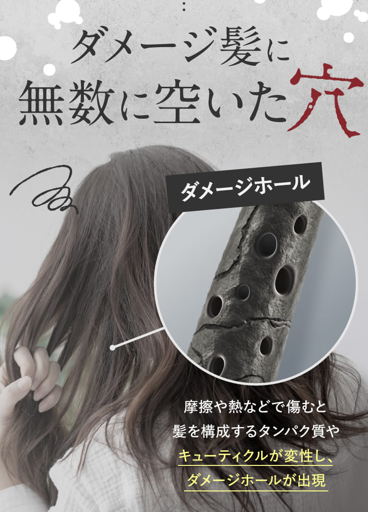 このダメージホールを修復するオールインワンの贅沢成分が、傷んでしまったあなたの髪を美髪へ導いてくれるんです✨